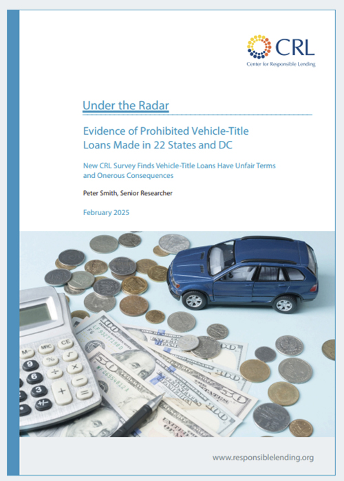 Important details about lender practices and impacts are not fully transparent to the public, despite the high costs and stakes involved with these loans. To add to the body of information available about vehicle-title lending, CRL commissioned BSP Research to survey 7,115 Americans in July 2024, assembling a sample of 400 respondents who had taken out vehicle-title loans in the past 24 months. Respondents described the circumstances, duration, amount, terms, and impacts of their borrowing. CRL identified important findings from the survey responses, including: Vehicle-title loans are very expensive, often unaffordable, and can lead borrowers into a debt trap; Vehicle-title loans have onerous consequences; Vehicle-title loans are being made in 23 jurisdiction (22 states plus DC) that prohibit vehicle-title loans.